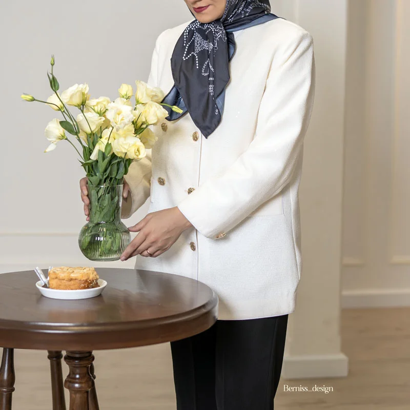 مناسب فصل: پاییز و زمستان ـ جنس پارچه: پشمی ـ کل کار لایی کشی و آستر کشی شده است. ترجیحاً خشک شویی شود یا شستشوی دستی، اتوکشی یا بخار ملایم و بافاصله